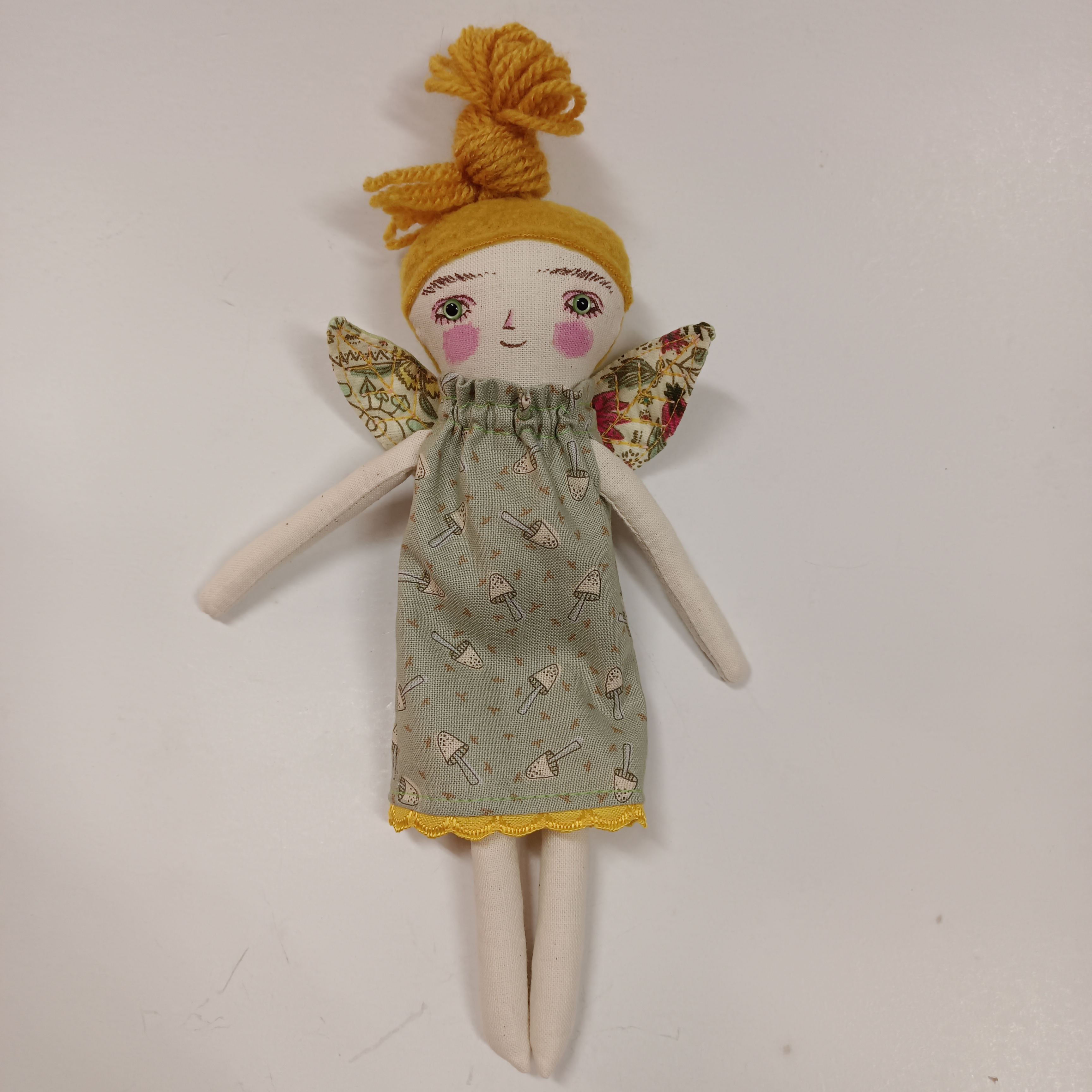 Obličej je namalovaný tuze tenkým štětečkem nezávadnými textilními barvami, které jsou tepelně zafixovány žehličkou. Každá panenka je proto neopakovatelný originál.