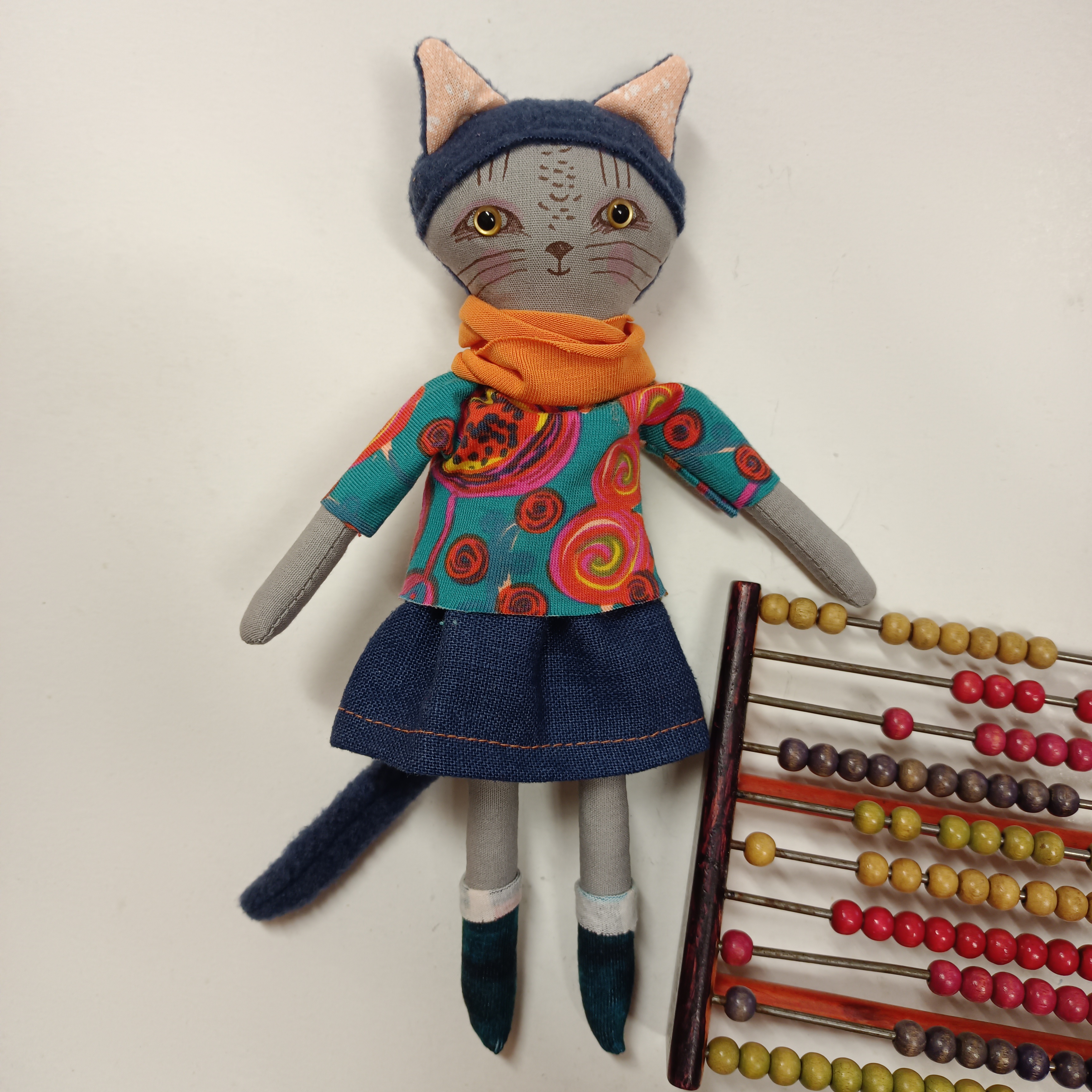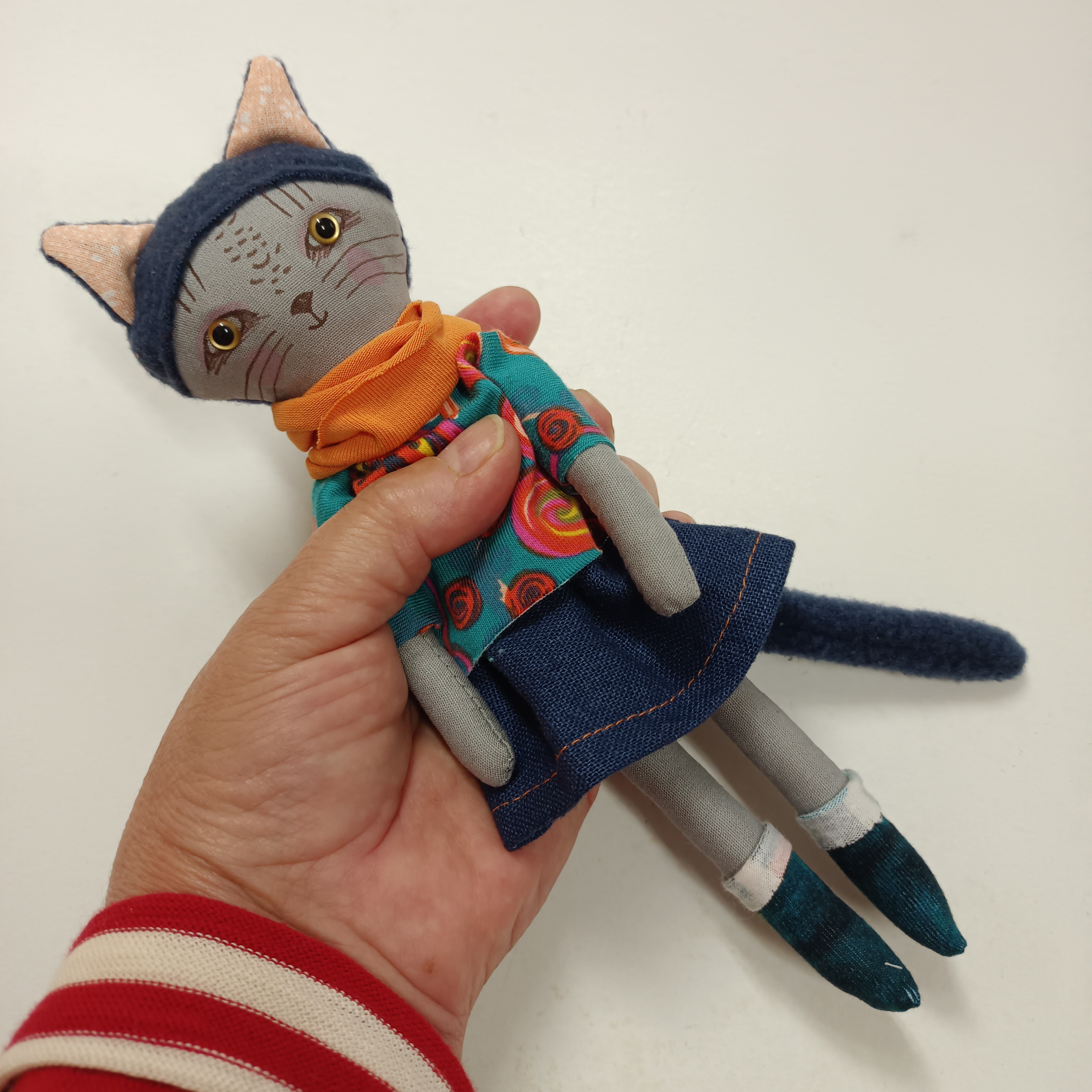 … malá panenka je ušitá z bavlněných látek. Ouška a ocásek jsou z fleece.