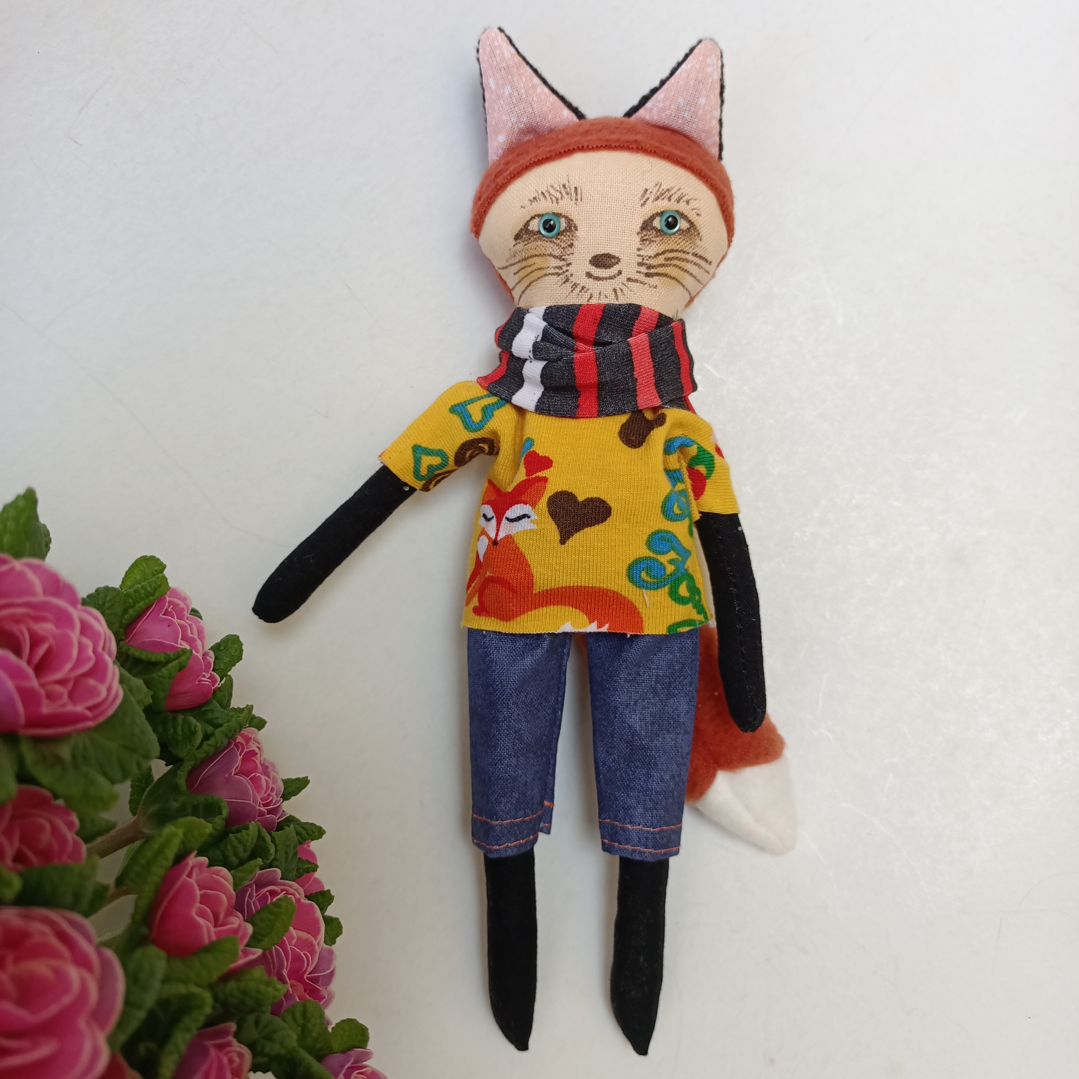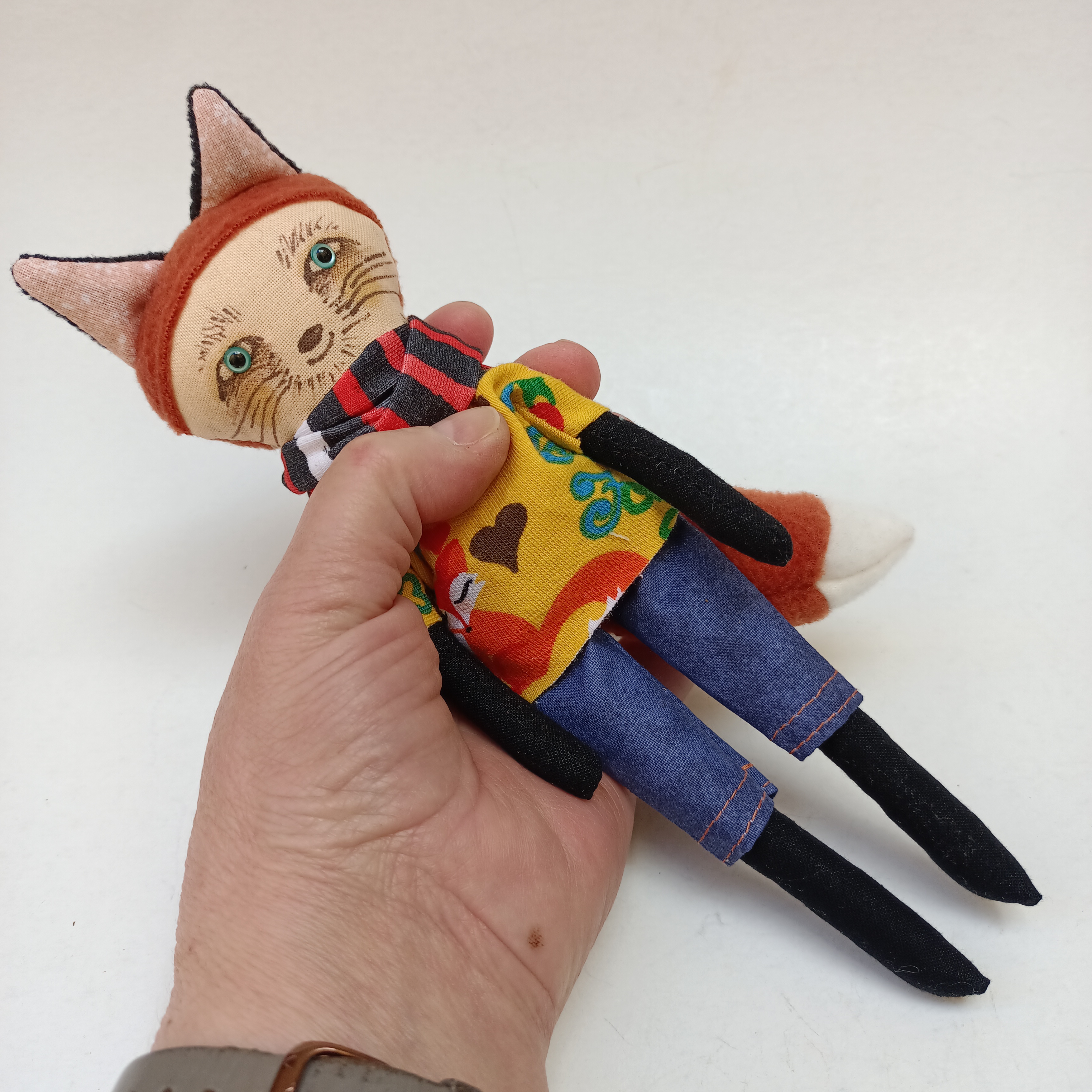 … malá panenka je ušitá z bavlněných látek. Ouška a ocásek jsou z fleece.