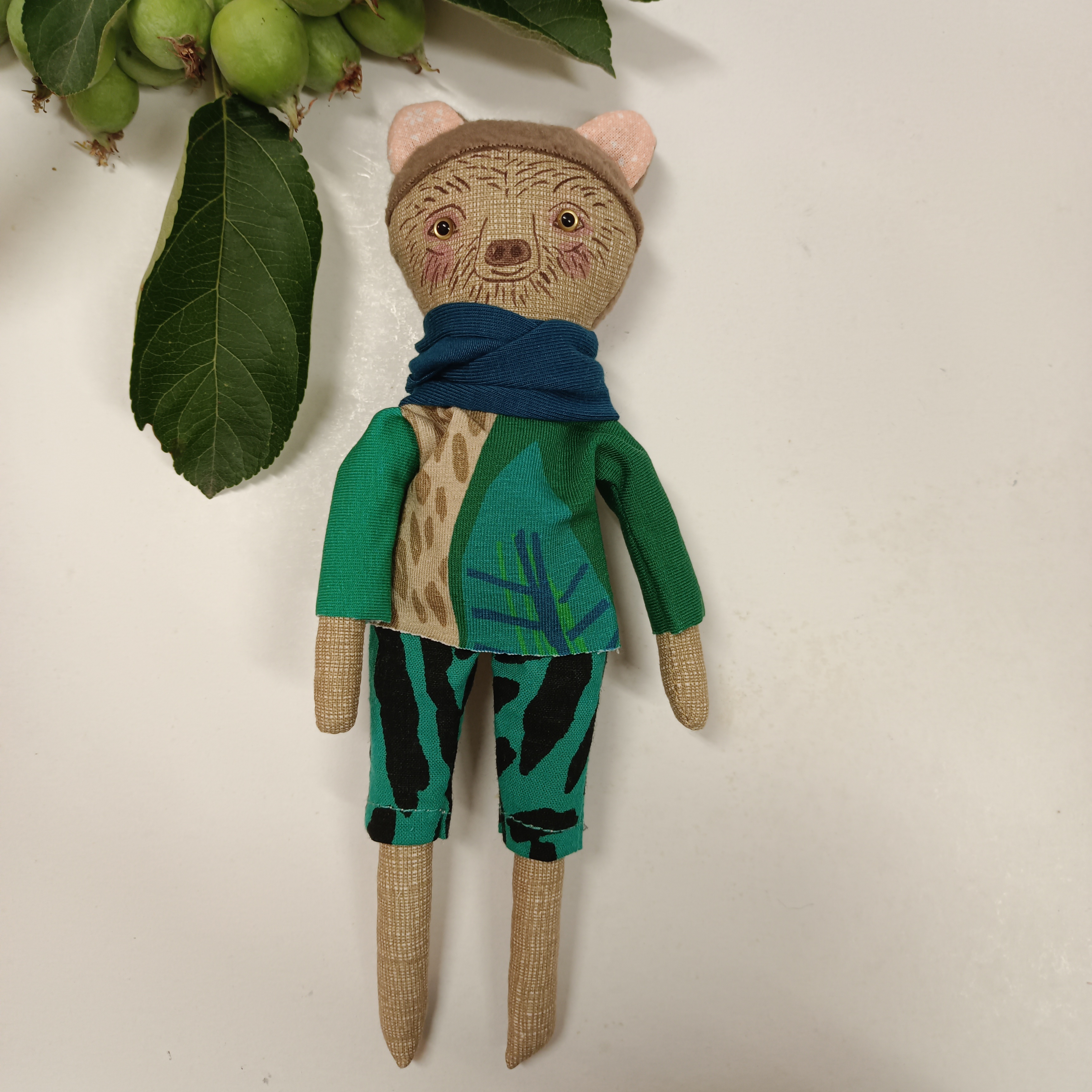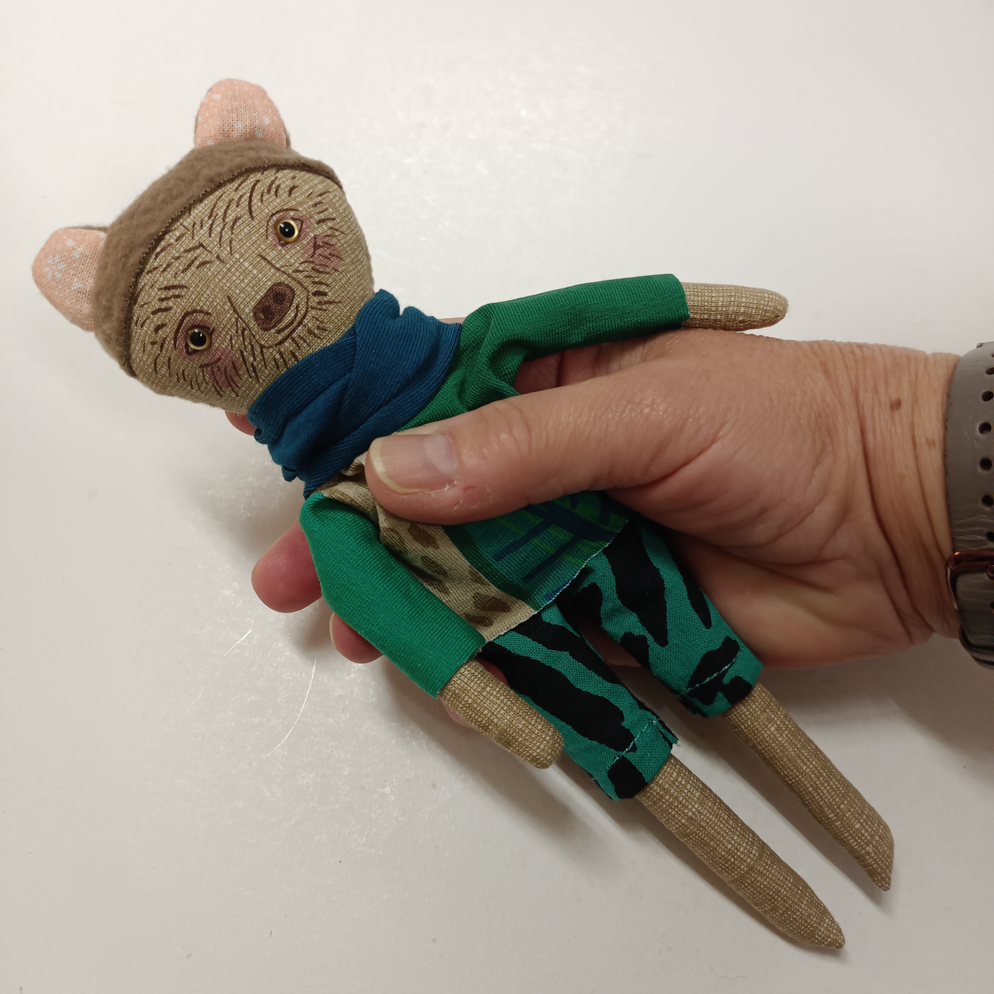 … malá panenka je ušitá z bavlněných látek. Ouška a ocásek jsou z fleece.