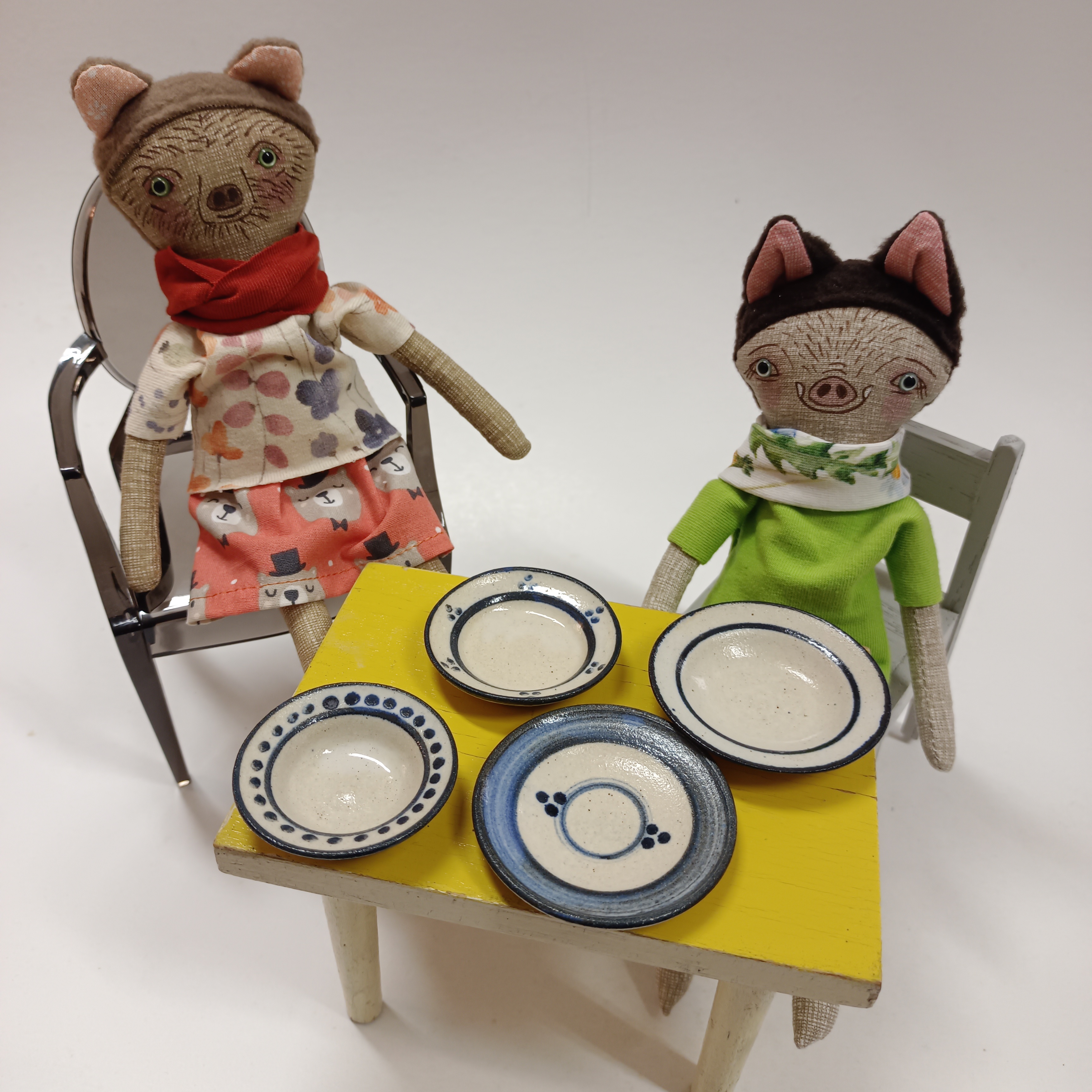 ručně vyrobený a malovaný kameninový talířek pro vaše panenky a zvířátka