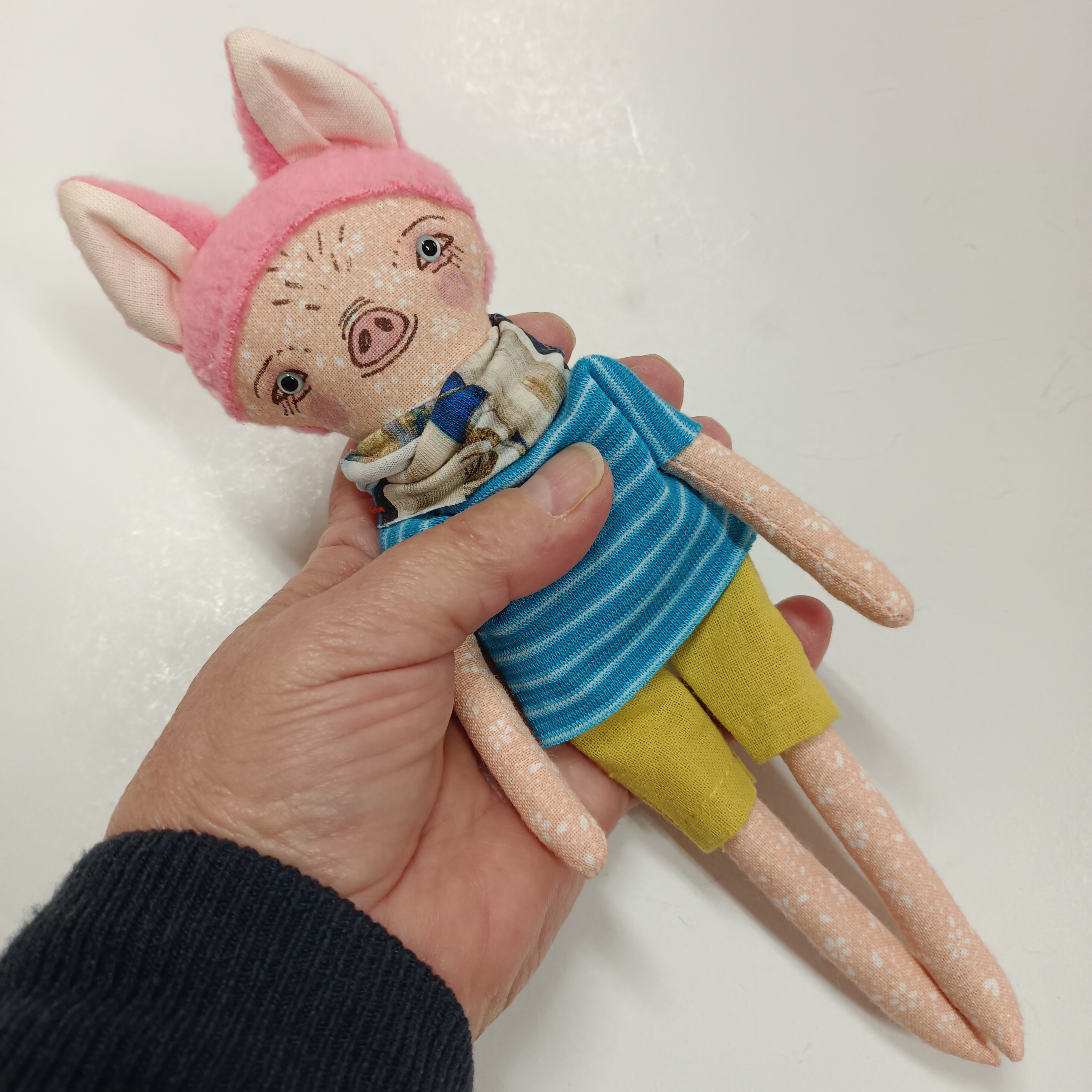 Obličej je namalovaný tuze tenkým štětečkem nezávadnými textilními barvami, které jsou tepelně zafixovány žehličkou. Každá panenka je proto neopakovatelný originál.