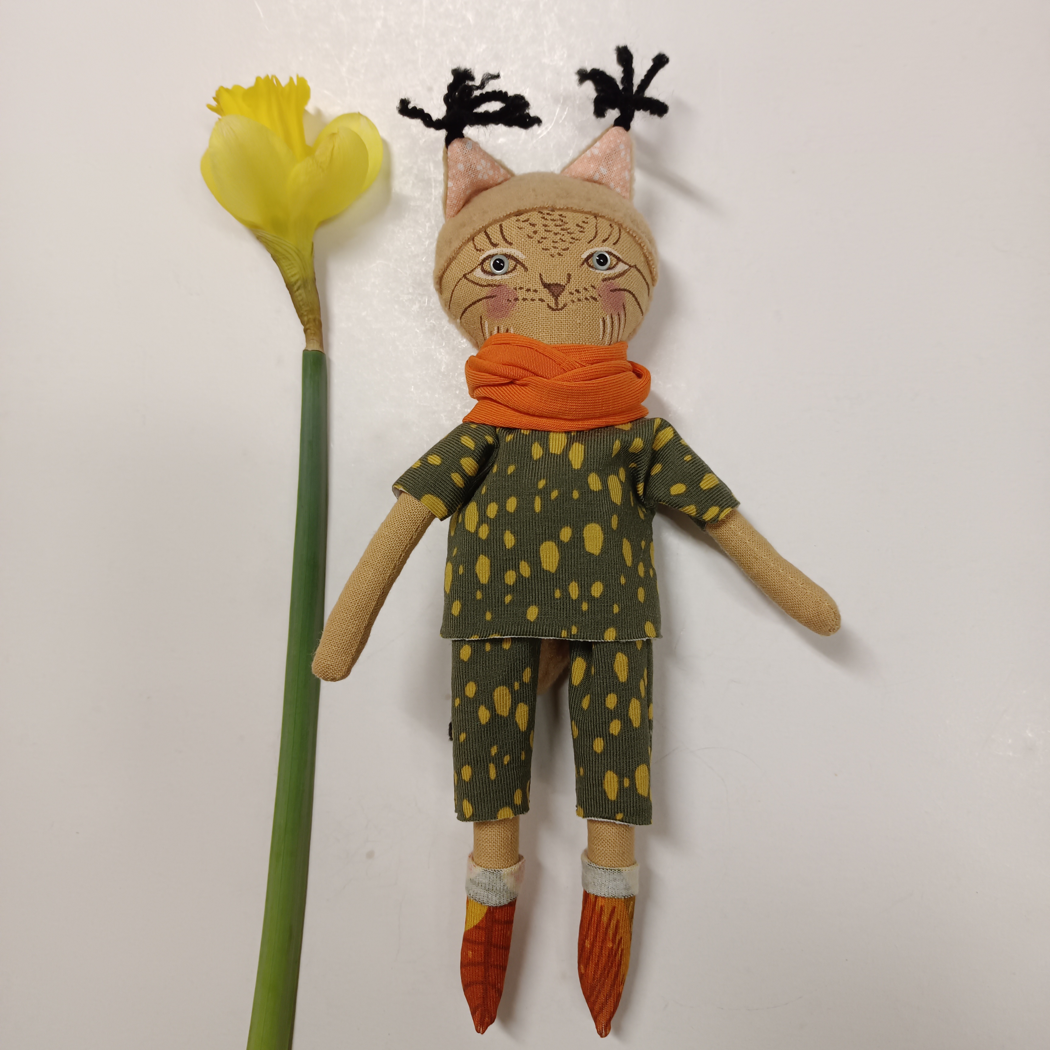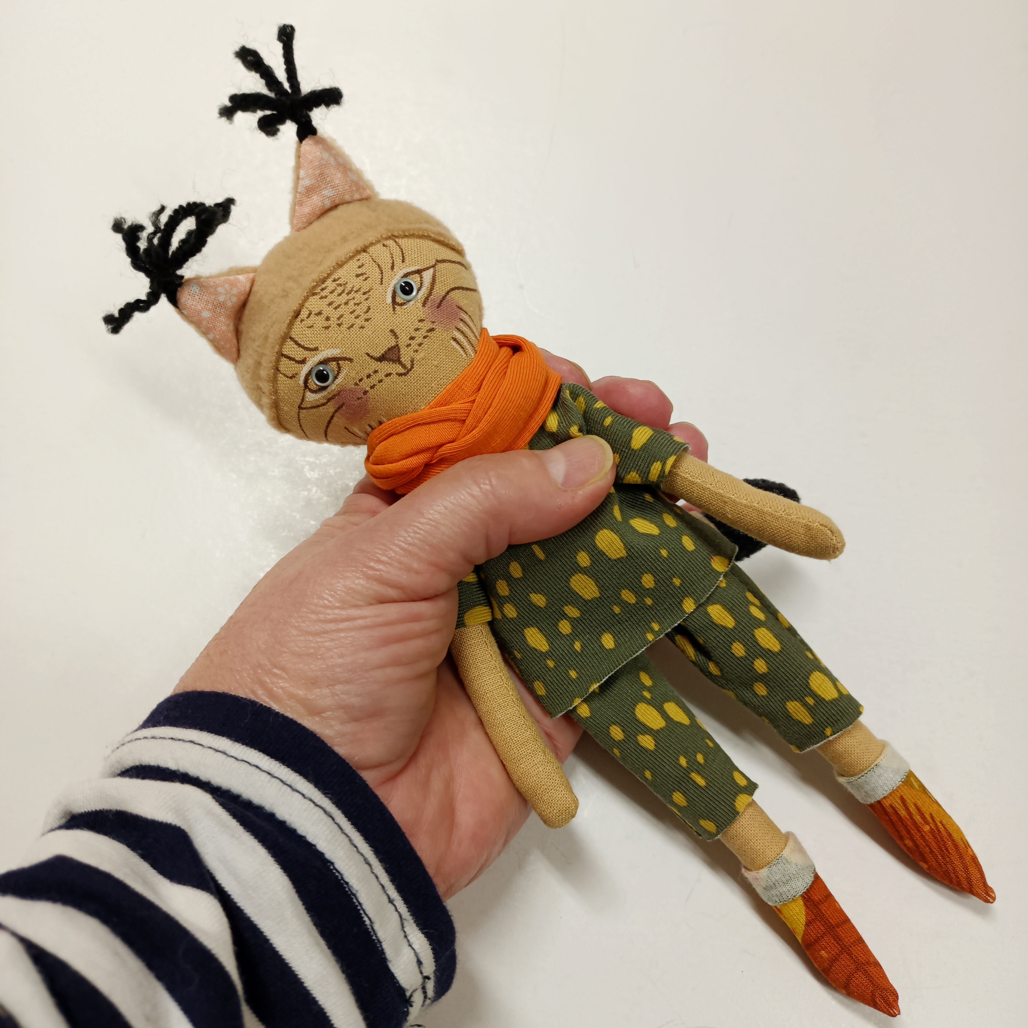 … malá panenka je ušitá z bavlněných látek. Ouška a ocásek jsou z fleece.