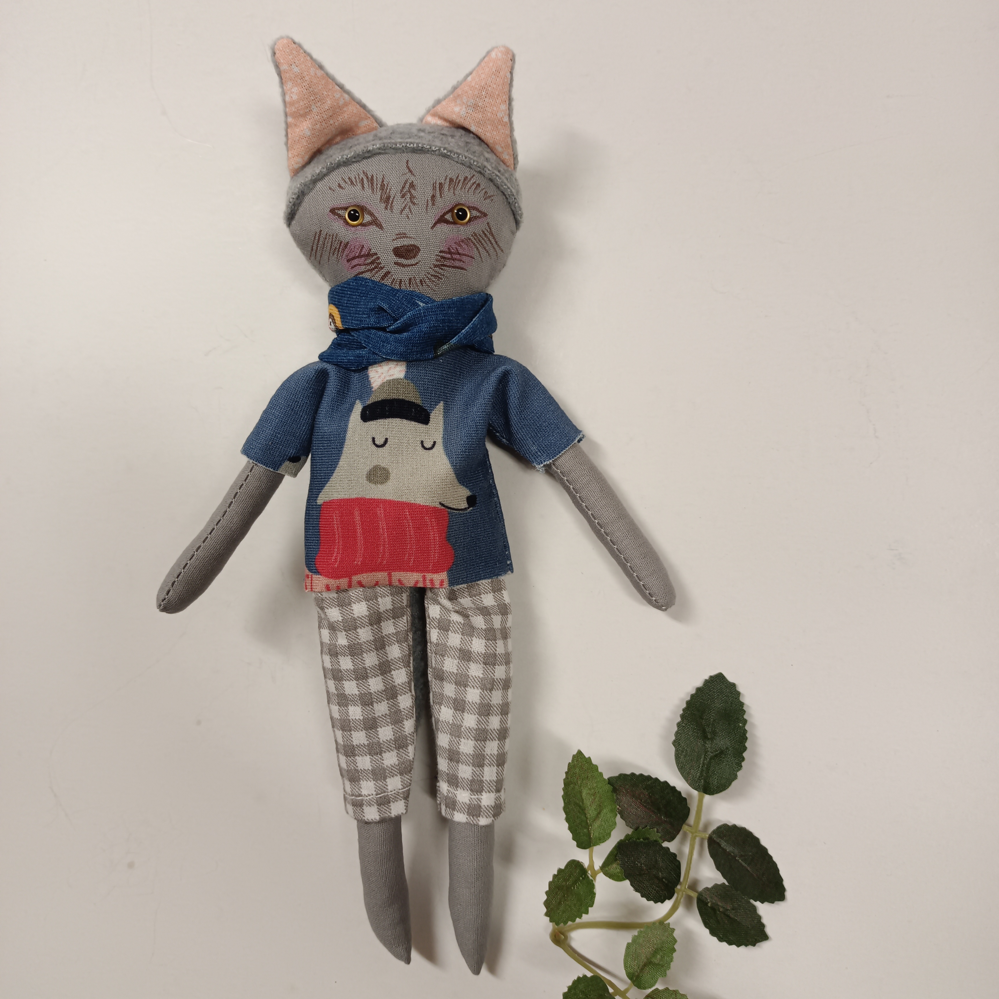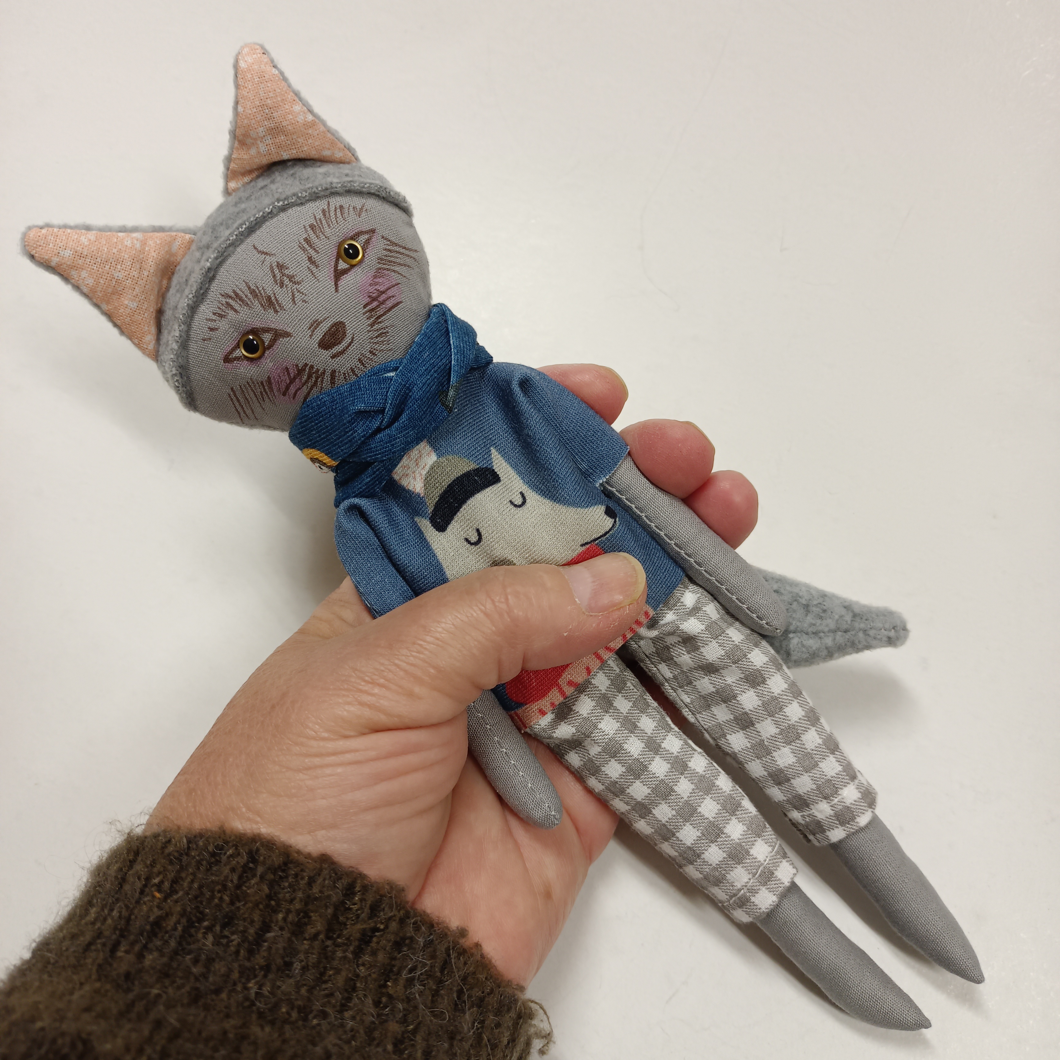 … malá panenka je ušitá z bavlněných látek. Ouška a ocásek jsou z fleece.