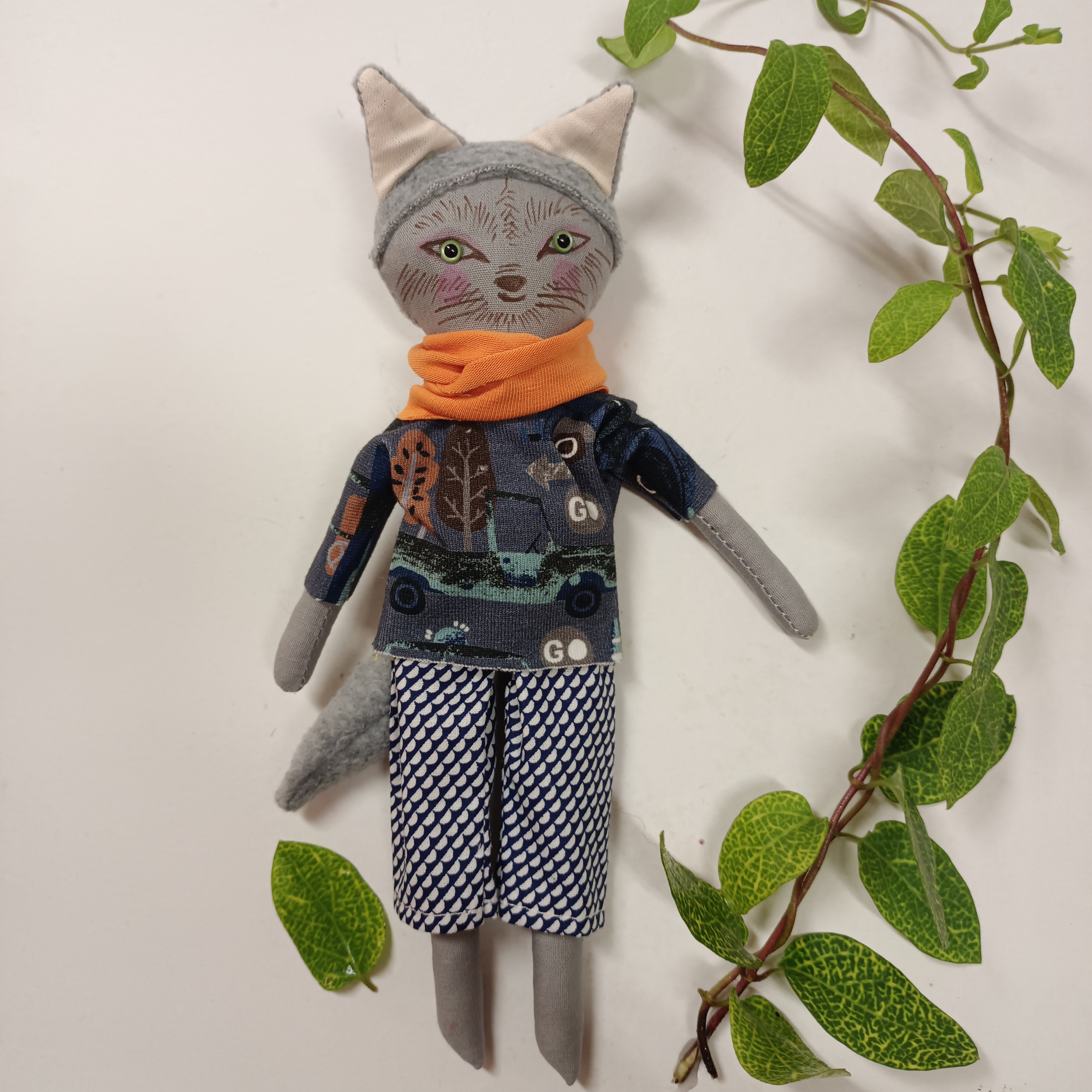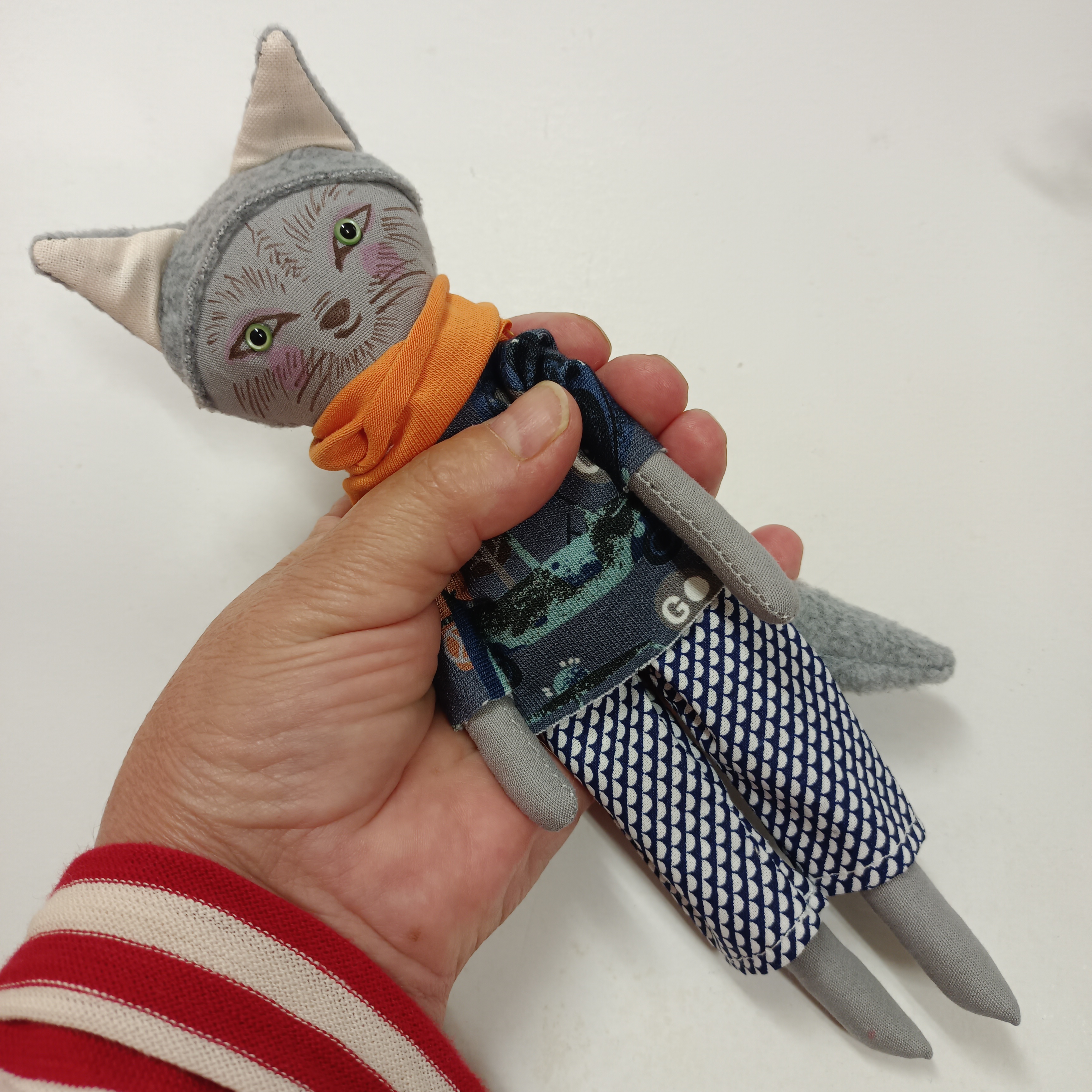 … malá panenka je ušitá z bavlněných látek. Ouška a ocásek jsou z fleece.